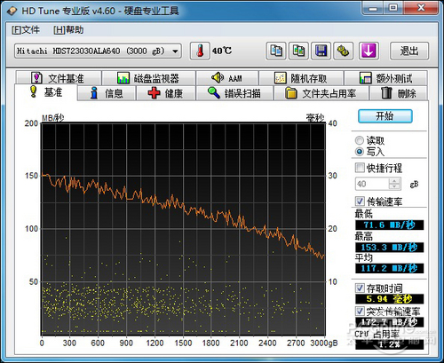 HD Tune是一款较常用的硬盘工具软件,能检测出硬盘的固件版本、序列号、容量、缓存大小以及当前的Ultra DMA模式等基本信息,另外硬盘传输速率测试、健康状态检测、温度检测及磁盘表面扫描等功能。其中硬盘传输速率测试常被用户用于检测硬盘的性能。